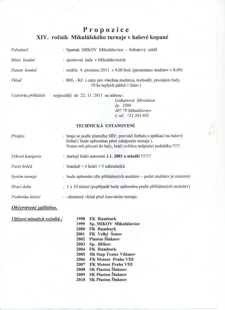 14. ročník Mikulášského turnaje v halové kopané